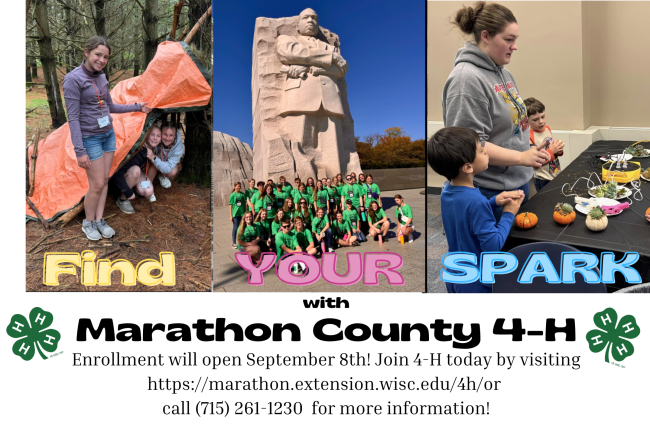 For additional assistance with enrolling, please view the Wisconsin 4-H Family Enrollment Guide or contact the Marathon County 4-H office at 715-261-1230.