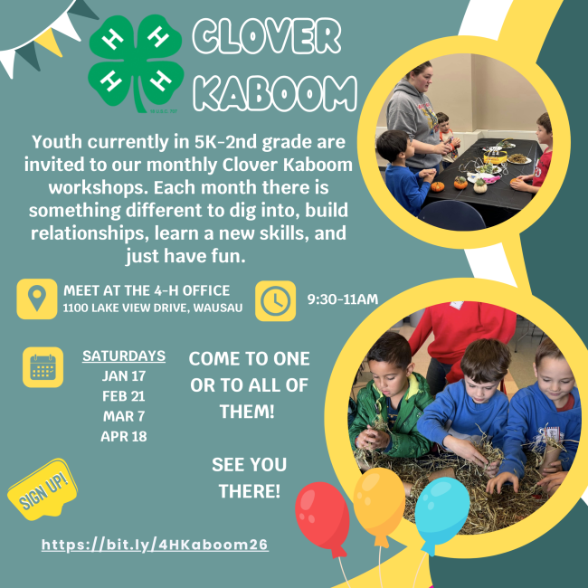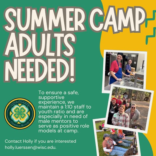 Questions? Contact Holly Luerssen, 4-H Educator, at holly.luerssen@wisc.edu or 715-261-1240.