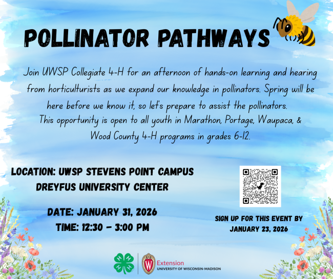 Join UWSP Collegiate 4-H for an afternoon of hands-on learning as we dig into the world of pollinators and hear directly from horticulturists! Spring will be here before we know it—let’s get ready to help our buzzing friends thrive ![]()