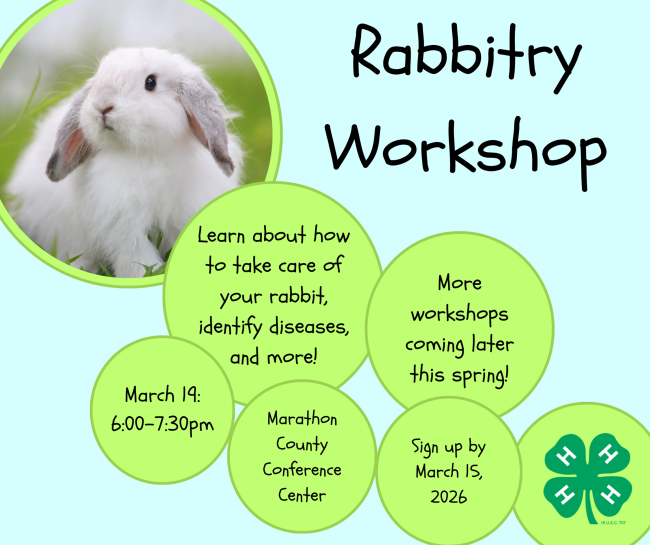 Calling all youth interested in rabbits! Join us for the 4-H Rabbit Workshop on March 19th for a fun and informative hands-on learning experience.