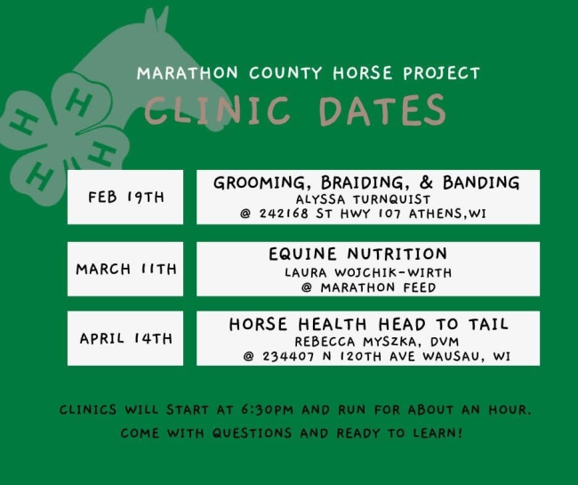 MC 4-H Horse Project Members, check out the upcoming horse project clinics. Looks like a great opportunity to learn and meet others with similar interests.
