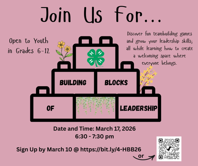 At the Building Blocks of Leadership workshop, you’ll strengthen your leadership skills, learn new teambuilding games, and practice creating a welcoming space for everyone. Great for club officers, project youth leaders, camp counselors, and those interested in learning something new.